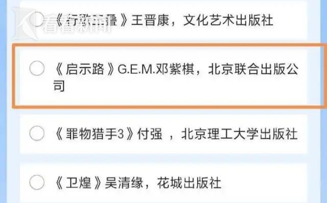 此前,1月1日,第37届银河奖海选投票名单公布,邓紫棋2025年出版的《启示路》 入选“最佳原创图书”票选名单,据了解,该书上市首日销量即破20万册,销售额突破4000万元。昨天,邓紫棋微博发文对此回应,表示新人作家受宠若惊,超级受到鼓励!