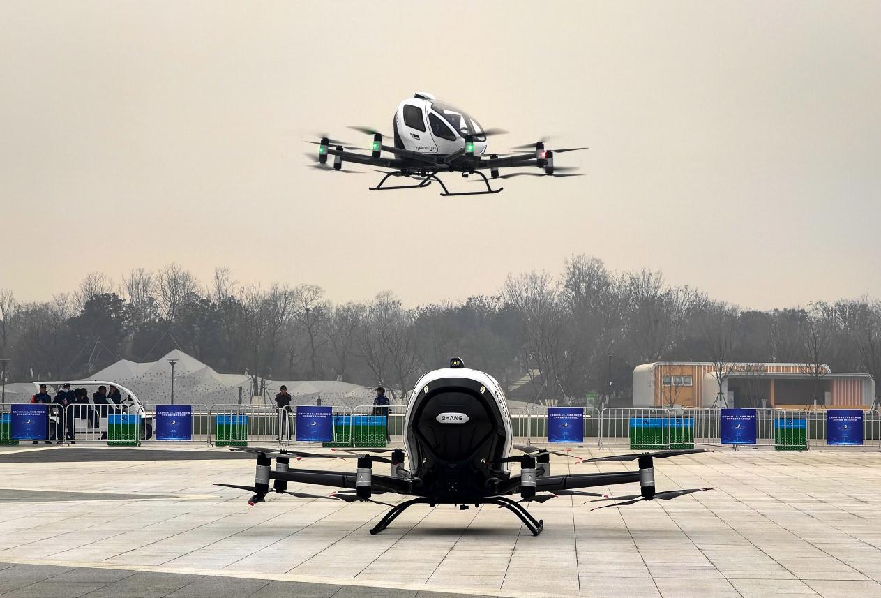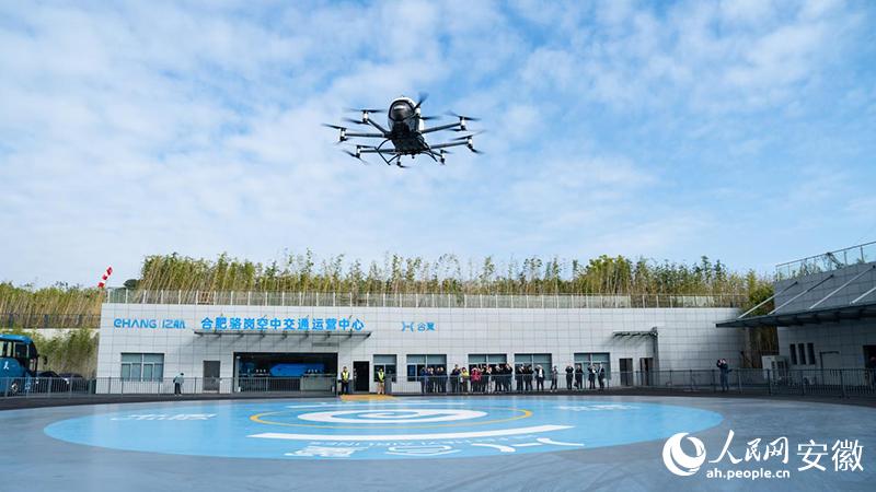 亿航EH216-S在合肥开展全球商业首飞演示。刘庆桥摄
