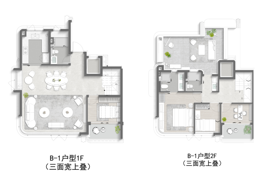 在所有叠墅户型中,下叠往往是更具“墅感”的,萃屿原墅下叠产品双首层创意空间的设计,实际使用面积超大将墅居生活体验拉满!