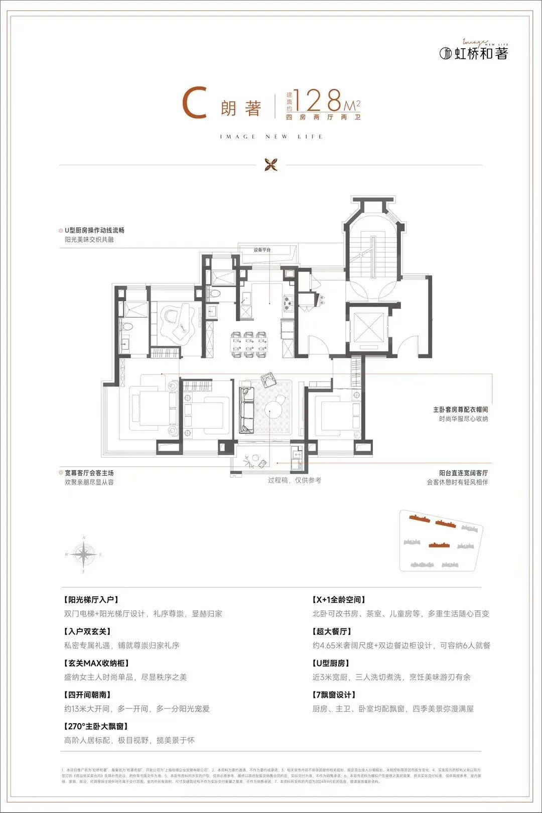 - 128㎡四房:类一梯一户设计,四开间朝南,面宽约13米,配备多功能房与双阳台,适配三代同堂家庭。
