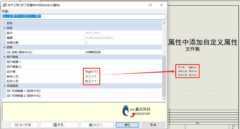 此工作流最大的优点在于数据的单一源头性。所有自定义属性只需在 【工程属性】 中集中管理。后续若信息发生变动(如设计者姓名变更),只需在工程属性中修改一次,所有相关图纸图框中的对应信息便会自动同步更新,彻底避免了手动逐一修改图纸可能带来的遗漏与错误。