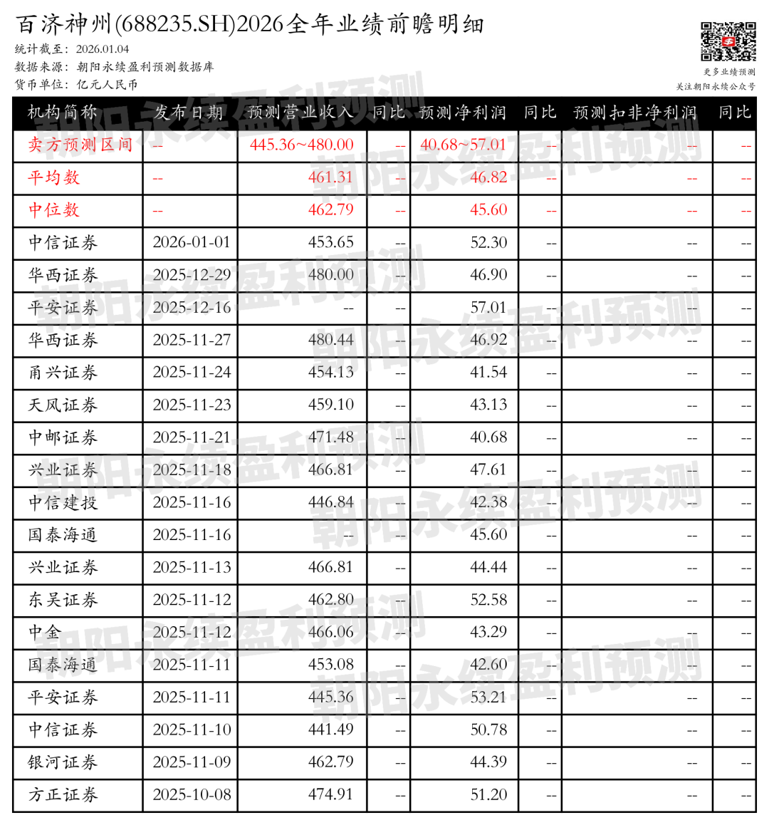 截至2026年01月04日,根据朝阳永续季度业绩前瞻数据: