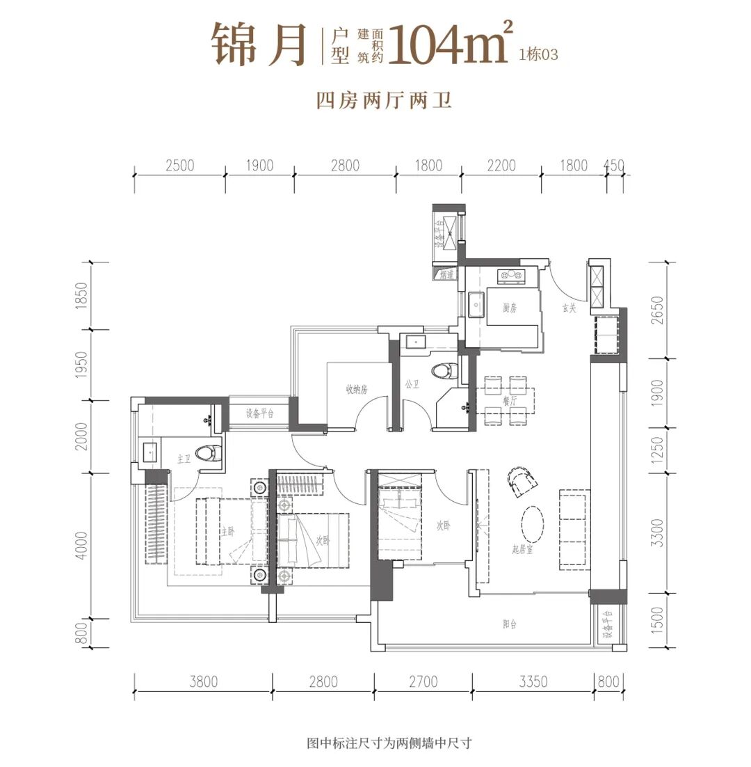 竖厅格局,客厅3.7米开间,S墙预留冰箱位,四开间朝南,主卧270°无柱转角飘窗还带1个设备平台约1.52平,分别做到了主卧20.34㎡/次卧11.2㎡/次卧7.7㎡/次卧6.75㎡(包含墙体飘窗),U型厨房烟道外置,得房率约101.16%(包含赠送),客厅连接次卧出大阳台约11.76平,东南朝向。