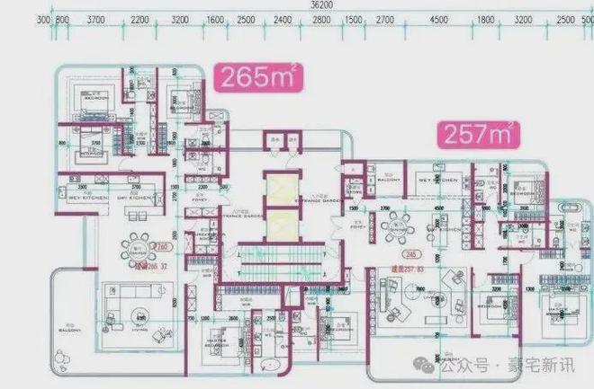 另外还有253-265平4房4卫的大平层豪宅,3套间+西厨。