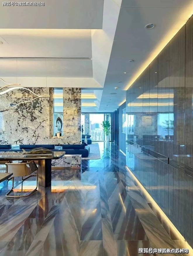 比如采用奢石静雅棕石、雪山银狐石、月光白石、挪威木纹石等石材;