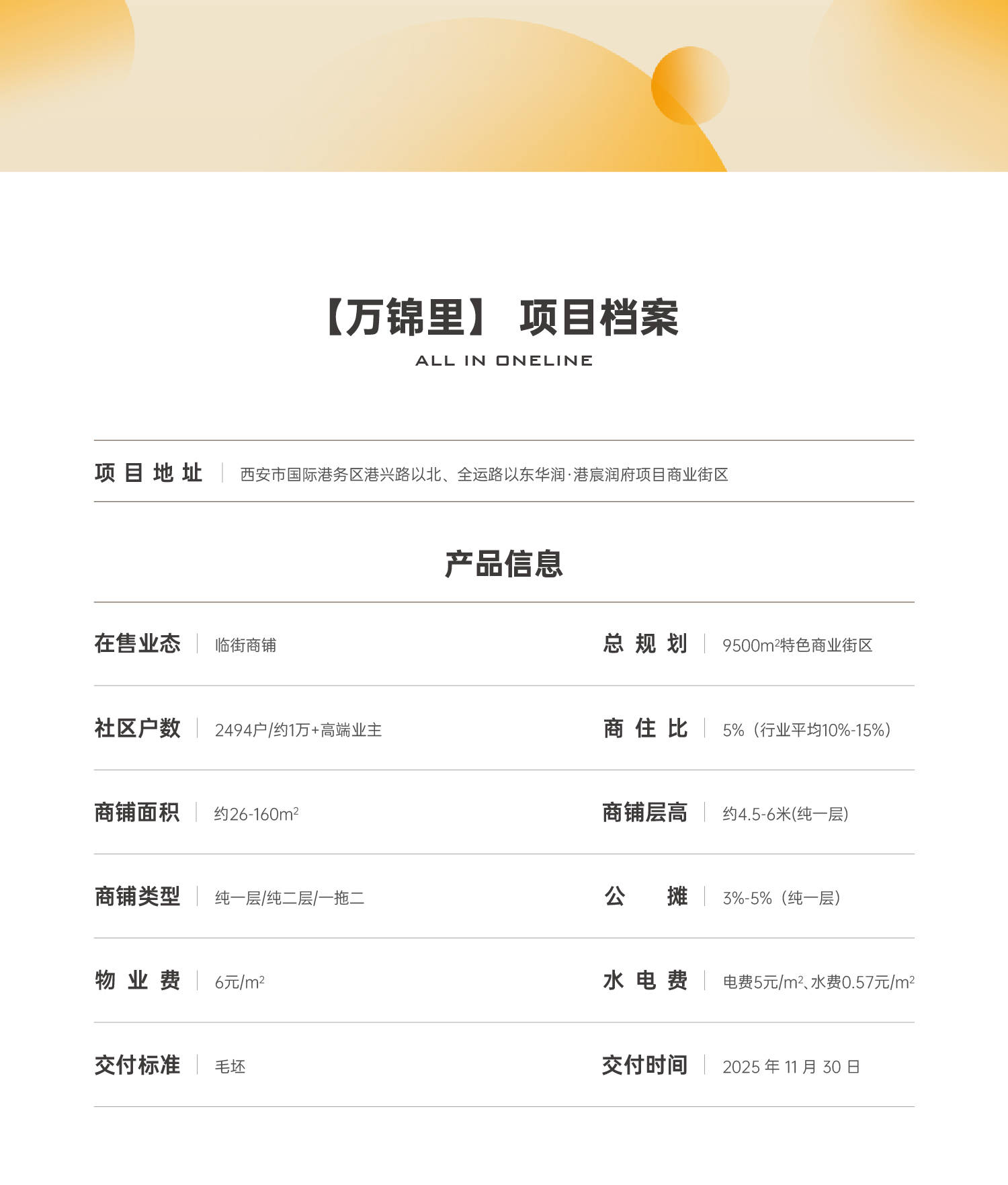 本案商业总体量约9500㎡,商业命名【万锦里】商业街区,是一条真正包罗万象的特色商业街区。支持全业态经营,可满足集中商业所无法具备烟火气。兼具自身强大的商业势能与业态丰富度,及外向型社区底商的价值特点,吸附周边10万+人口的消费需求。同时出,又与其他商业综合体保留了适当的距离,避免了大型商业的虹吸效应。