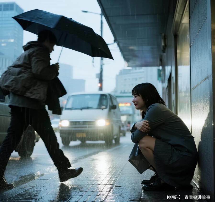 我蹲在公司楼下的屋檐下,冷风夹杂着雨水打湿了我的裙摆。我抱着膝盖,眼泪混着雨水往下掉,那种被全世界抛弃的孤独感,让我几乎崩溃。