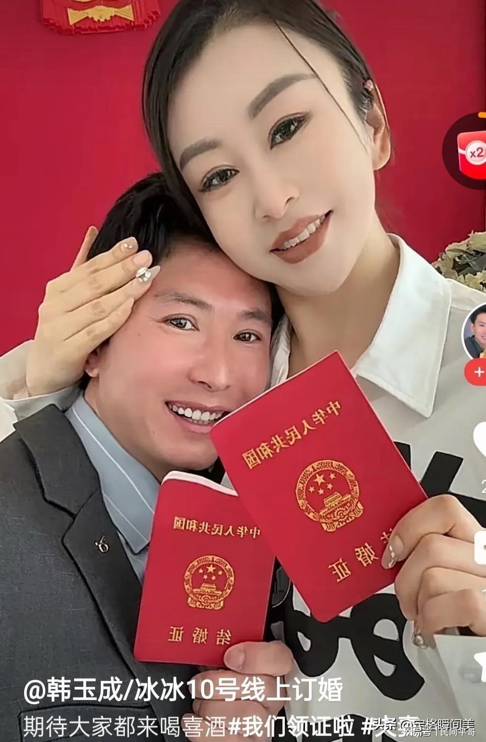 了解韩玉成的人都清楚,他的婚姻从一开始就被异化为吸睛工具。从与前妻蓉蓉的离婚纠纷,到和冰冰的分分合合,每一段关系都被搬进镜头,活成了持续上演的狗血剧。2025年10月高调举办二婚婚礼时,他还将冰冰塑造成“低谷期的精神支柱”,视频里满是恩爱互动,贴上“励志夫妻”的标签。可婚后不到两个月,互动骤减,他的内容逐渐变成对冰冰的抱怨,多次公开喊话对方回家。