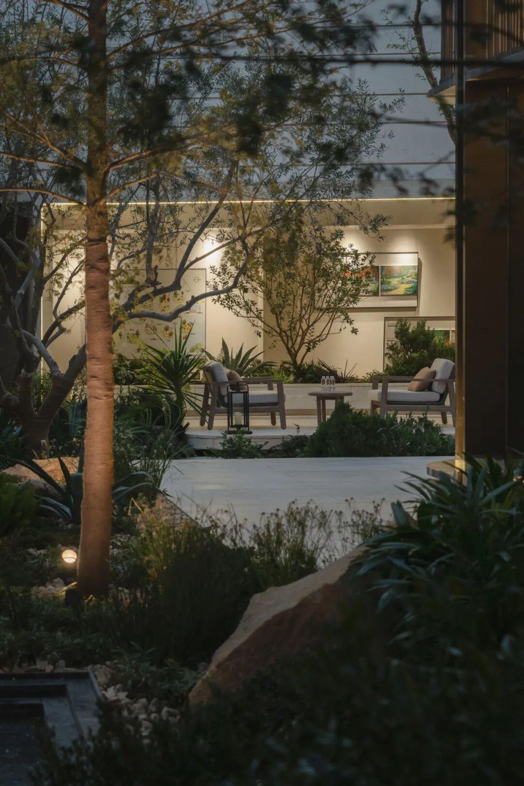 景观门厅与建筑立面采用“协同构图法”,在比例、材质与光影上形成互文关系,克制的体块、精致的细节、在无形中强化了归家的精神标识。不张扬,却足够明确;让克制成为力量,让细节成为记忆。