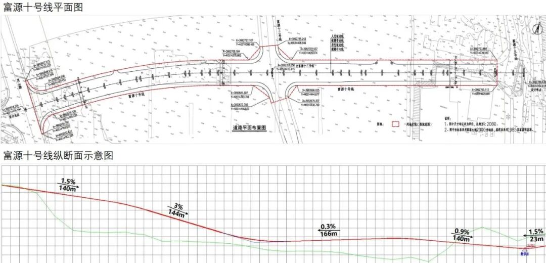 张戈庄社区富源十号线(茂山路-规划富源十五号线段)由青岛市城市建设设计研究院有限公司设计,为双向四车道城市次干路,道路长约为613米,红线宽约为30米。项目总投资2701.3万元,项目计划工期300天。计划开工日期2026-01-31开工,2026-11-27竣工。