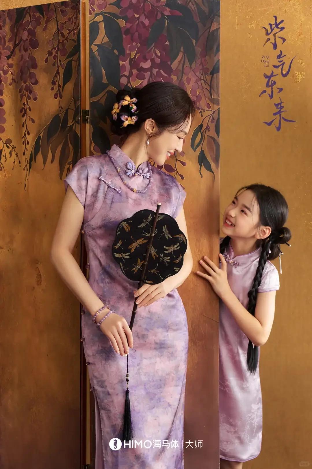 董璇和女儿的第二套服装选择了优雅的紫色旗袍,在董璇和张维伊结婚以来,时常有董璇二胎、小腹隆起的消息发出。