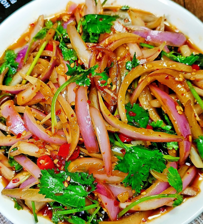 大蒜剁碎,洋葱切丝,一起放碗里,加点香醋、盐、香油拌匀,腌一会儿就能吃。大蒜富含大蒜素,抗菌杀毒、增强免疫力,洋葱含有槲皮素、硫化物,能抗炎抗感冒。这道凉拌菜当配菜、加主食都很搭,清爽又开胃,吃完浑身都暖和