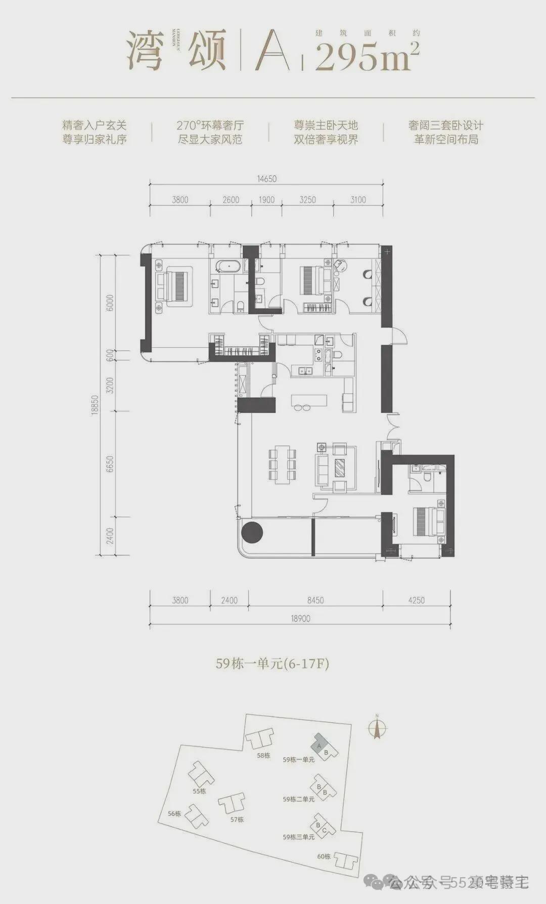 三期首批推出的是55-60栋,约270套,其中192㎡4房3卫有106套,209㎡4房4卫有82套,247㎡4房4卫有82套,备案均价9.9万/㎡,2023年12月开盘,开盘当天实现“日光”!