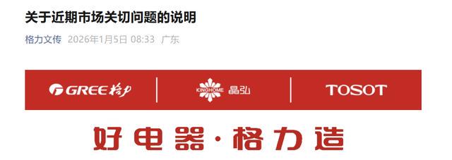1月5日消息,格力电器通过文化传媒中心官方平台“格力文传”发文称,近期,公司陆续收到投资者及媒体就部分企业推出空调涨价和“铝代铜”计划等相关问题的咨询,询问公司的态度和计划。