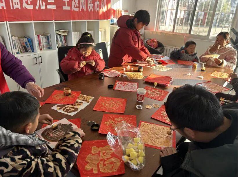 最让孩子们兴奋不已的当属“拓福”手工环节。在志愿者的示范下,孩子们拿起福字模具和彩色拓印工具,小心翼翼地在红纸上拓印出一个个形态各异的“福”字以及小灯笼、生肖等新年图案。每一幅作品都承载着孩子们对新年的美好期盼,活动现场洋溢着欢乐祥和的节日气氛。