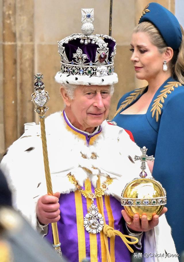 2023年加冕仪式后的查尔斯国王,镶嵌在王冠正面底部的库里南2号钻石与镶嵌在他手里权杖的库里南1号钻石,都是自世界最大钻石原石切割而来。