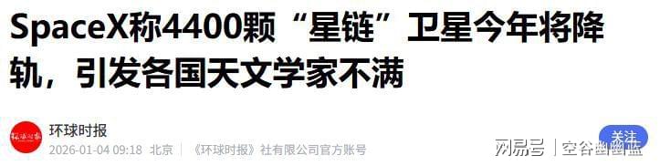 2026年初,SpaceX计划将4400颗星链卫星从550公里轨道集体降至480公里,理由是“维护空间安全”。