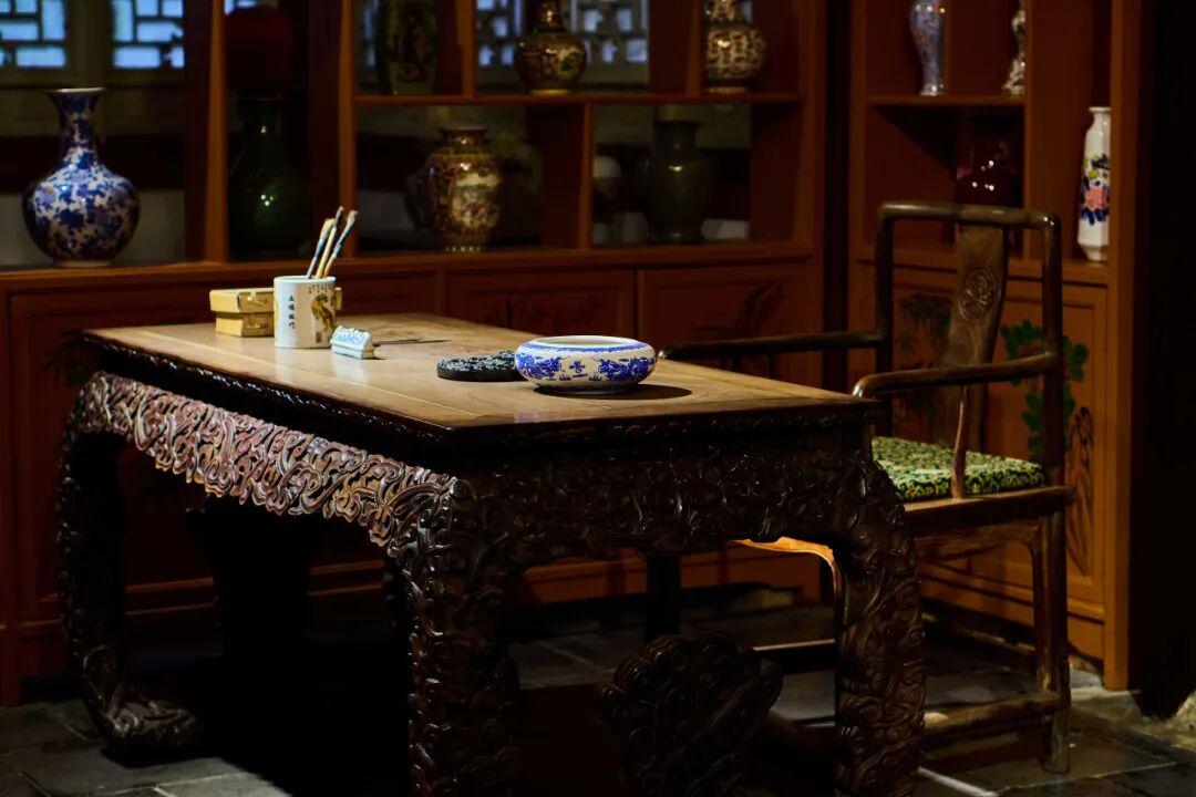 我选择以“曲径通幽”作为游览的起点,因为它也是大观园刚盖好时贾政带着宝玉以及清客相公们的游览起点。“曲径通幽”用假山做影壁,成为园子一扇半开半闭的门,以防一览无遗的突兀感。接着,我也学了宝玉,抬脚往潇湘馆走去,毕竟这是林妹妹的屋子。潇湘馆的确小巧,屋外也有古梨树与修竹,但是室内陈设上完全没有往让刘姥姥叹为观止、让贾母也十分满意的书房风格布置,反而是做成了古琴非遗展示。这可能是受了87版电视剧《红楼梦》的影响,事实上黛玉与宝玉讨论琴谱的情节是八十回后才出现的,未必是曹公的构想。当然,抚琴是古代上层阶级教育中的一部分,黛玉会弹琴不奇怪,诸位小姐们恐怕都能来两下子。宝玉的姐姐元春带去宫中的丫鬟名曰抱琴,就是暗示她擅长弹琴。