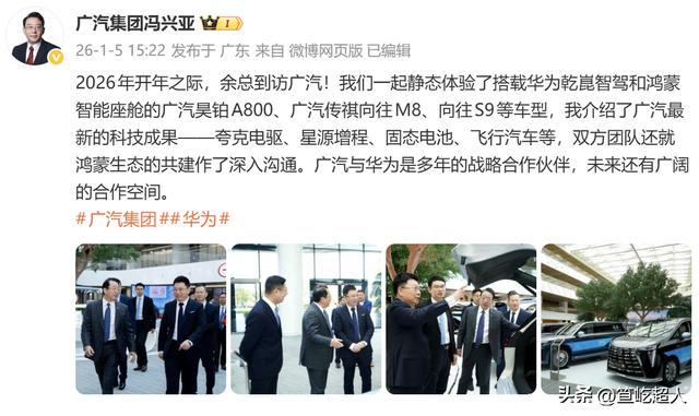 近日,华为与广汽集团高层通过微博释放了深化鸿蒙生态共建等合作的明确信号。华为常务董事、产品投资评审委员会主任、终端BG董事长余承东表示,未来将持续开放鸿蒙系统与智能化能力,与车企伙伴共同推动产业进步。广汽集团董事长冯兴亚则透露,作为华为多年的战略合作伙伴,未来还有广阔的合作空间。