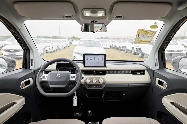 女王版这个复古风玩得挺细,前脸车顶直接贴木纹饰板,轮毂搞古铜配银色的双色设计,外后视镜和包围加镀铬条,米色车身配绿色拉花,整体调性像是从上 世纪 欧洲小城开出来的。这套审美明显冲着25到40岁女性用户去的,上下班代步开这车回头率够高,停在网红咖啡店门口也不违和。就是那木纹饰板耐久性得观察,夏天暴晒会不会褪色是个问题。