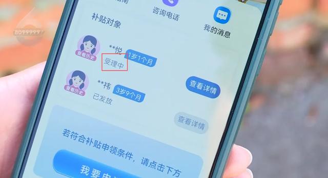 记者按照操作指引,在一分钟内就顺利完成了线上申领流程。而如果信息有变化,申领人只需针对有变动的内容进行修改再提交就可以了。提交完成后,在婴幼儿名字下方可以看到有一个“受理中”的字样提示。