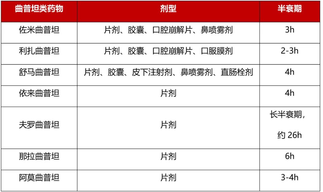 常用的曲普坦类药物