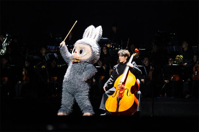 演出当晚,随着全场灯光渐暗,观众席中荧光棒如星海流动。在众人期待中,头戴礼帽的小金LABUBU走向舞台中央,接过乐团指挥的指挥棒。紧接着,YAYA、SPOOKY、TYCOCO、MOKOKO等精灵伙伴从舞台各处灵动现身,各司其职融入乐团。小灰LABUBU凑近低音提琴手,调皮地抢夺琴弓,仿佛向观众宣告——这场音乐盛宴,正式由精灵天团接管。
