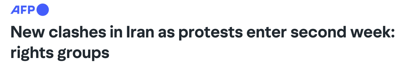 伊朗因生活成本飙升引发的抗议活动进入第二周,多地在1月4日(周日)再度爆发抗议者与安全部队之间的致命冲突。