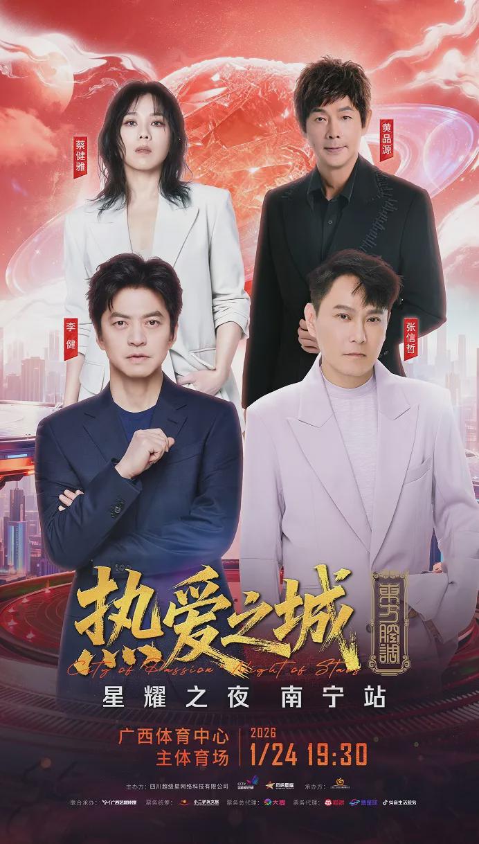 总台演唱会的脚步从未停歇,在持续点亮一座座城市、激活一个个文化IP之后,我们将目光投向更广阔的情感共鸣与城市叙事。2026年1月24日,大型演唱会暨音乐文旅综艺《热爱之城》即将登场,李健、张信哲、蔡健雅、黄品源等实力唱将将同台开唱。演唱会融合大屏节目内容,围绕节气、非遗与生活美学三位一体展开,让文化成为可听、可看、可沉浸的当代仪式。节目还将依托南宁作为“海陆枢纽”的区位优势,以“演唱会+”模式深度赋能,贯通“流量—产业—消费”全链条,有效激发区域经济活力,带动品牌与消费增长。通过打造“音乐节+枢纽经济”的融合发展模式,致力于形成可复制、可推广的“南宁样本”,为城市文旅与产业升级注入持续动力。