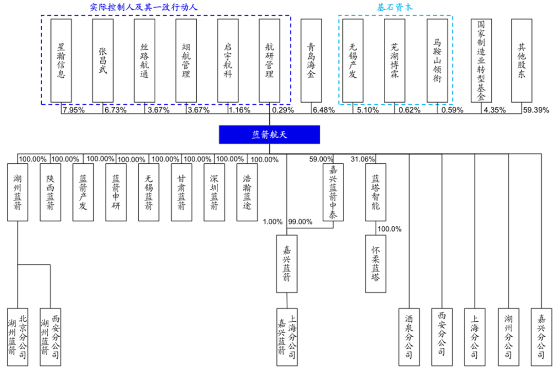 截至目前,蓝箭航天的股权架构可以分为5个部分: