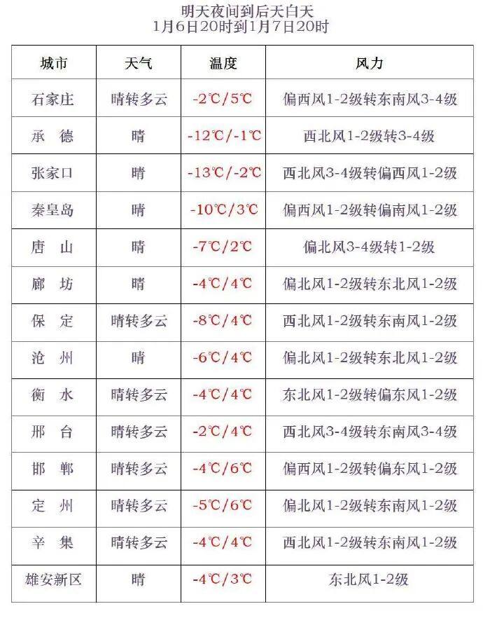 6日白天到夜间,预计6日白天到夜间,张家口、承德、保定西北部和石家庄、邢台、邯郸三个地区的西部山区有西北风5到6级,阵风7到8级,局地阵风可达9级;6日夜间,渤海海域和沿海地区有偏北风5到6级,阵风7到8级。