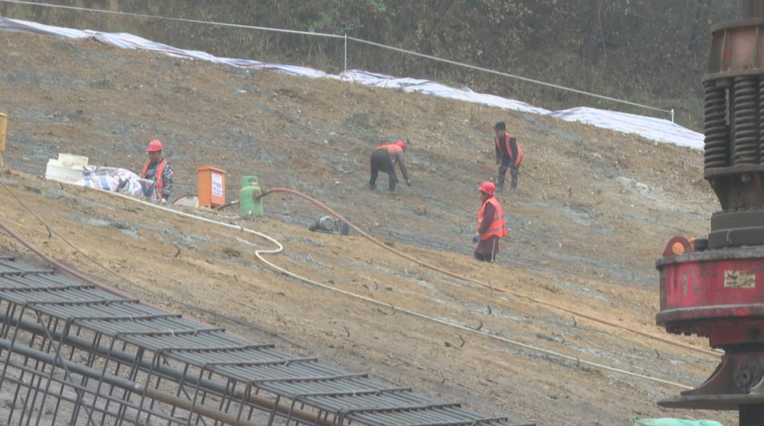 施工单位负责人 朱秀明:现在在做抗滑桩,抗滑桩已经完成了80%。