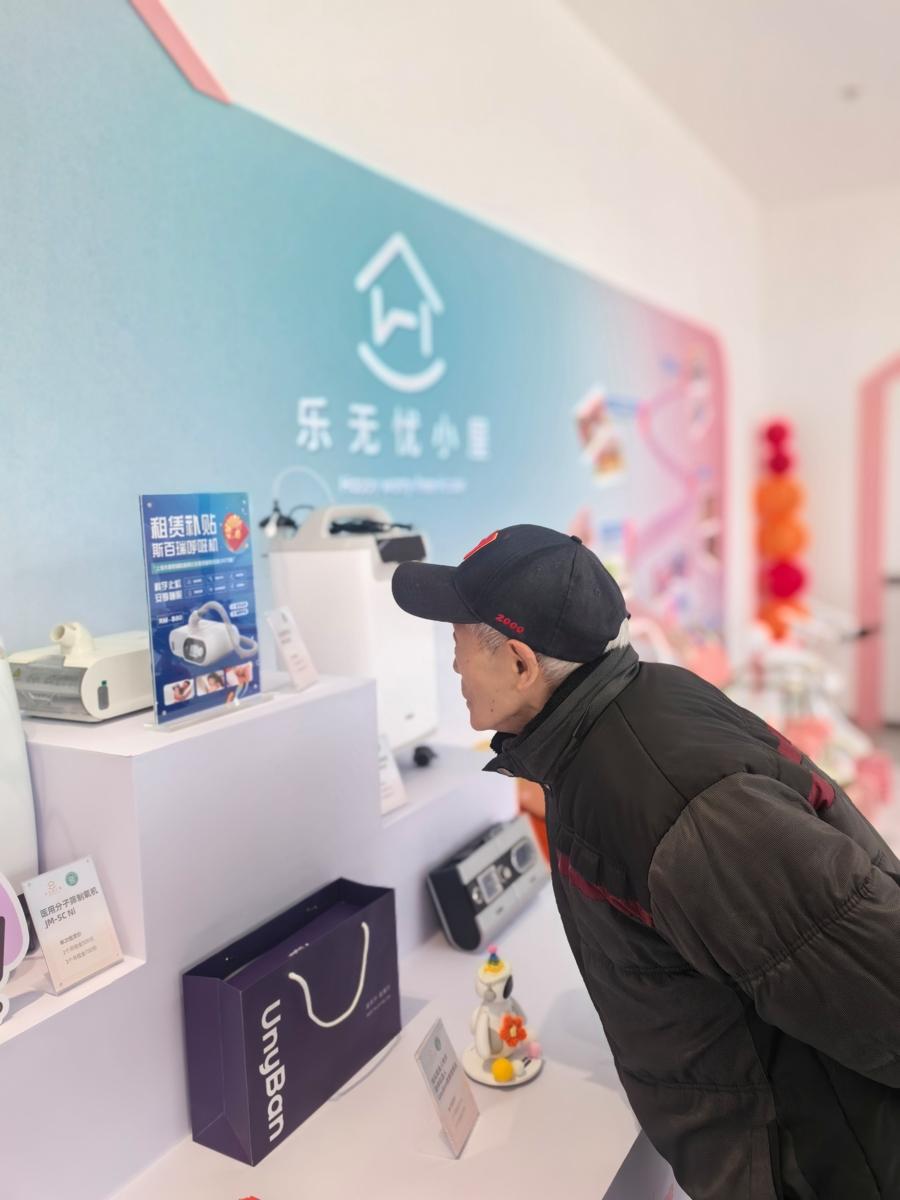 图为老年顾客正在查看被纳入康复辅具租赁目录的呼吸机。/采访对象提供