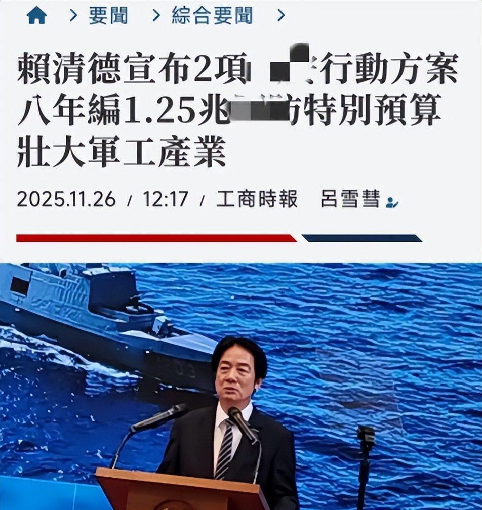 2026年1月1日,赖清德在元旦讲话中强调“台湾已没时间等待”,呼吁在野党放下分歧,尽快通过1.25兆军购预算。