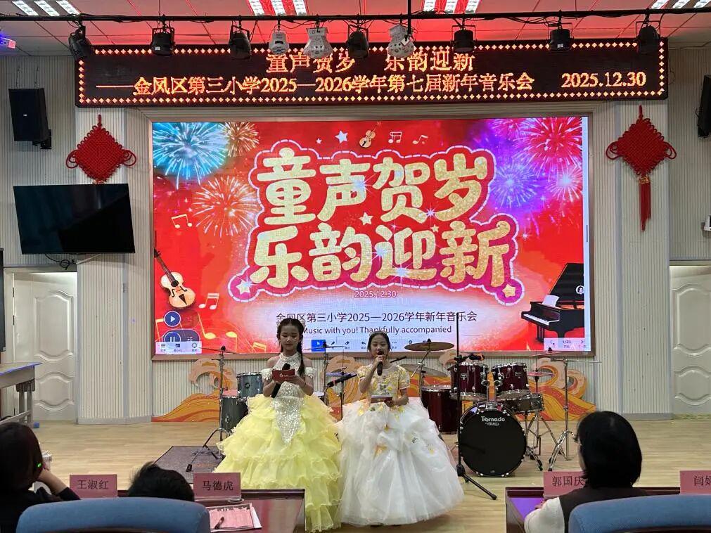 2025 年 12 月 30 日, 金凤区第三小学 2025-2026 学年新年音乐会在学校三草堂温情启幕!清脆童声与灵动乐音交织回荡,瞬间点燃了现场的热切期待。这是一场专属于孩子们的艺术狂欢,18 个精彩的节目涵盖器乐、舞蹈、武术、魔术、相声、声乐等多元艺术形式,小演员们怀揣最真挚的热情,凭借扎实的技艺登台献艺,为凛冬时节注入了满格温暖与蓬勃活力。金凤三小全体领导、师生及家长代表齐聚一堂,共同在美妙的旋律中迎接新年的到来。