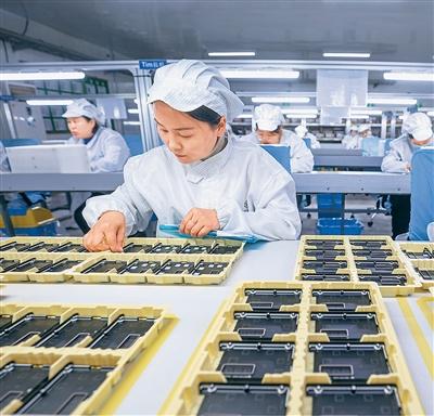 2025年12月31日,在山东省荣成市好运角旅游度假区一家外资电子企业的车间,工人赶制出口国外的电子产品。 李信君摄(新华社发)