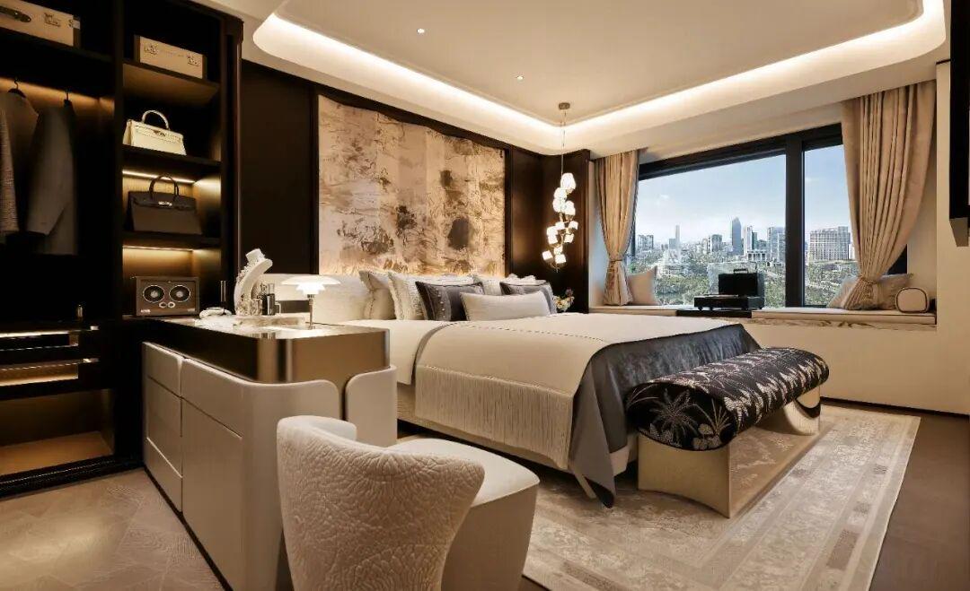 项目直接集齐CCD、梁志天、笛东等业内“顶流设计天团”,这些名字随便拿出一个都是神一般的存在:比如CCD作为全球酒店设计龙头,擅长将国际前沿的美学与居住功能深度融合,所以你能看到: