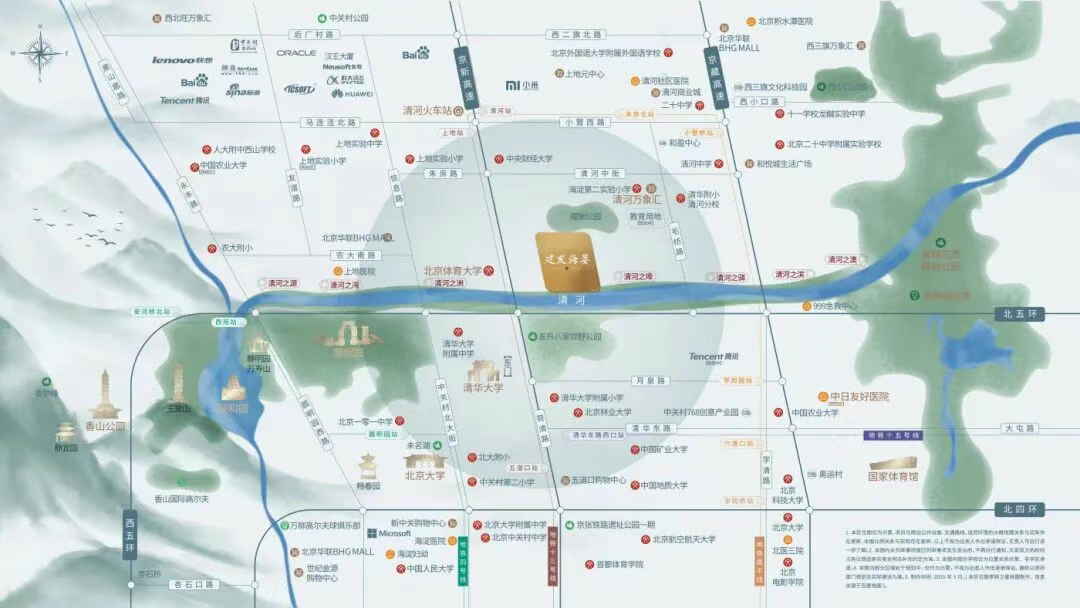直线约2-5公里处,中关村科学城板块核心、上地信息产业基地、中关村软件园环布。
