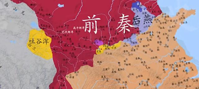 公元370年,灭前燕;374年,夺东晋益州地;376年,灭张氏前凉和鲜卑拓跋部的代国;382年,控制西域三十六小国。至此,前秦基本统一了中国北方。前秦统治区域“东极沧海,西并龟兹,南苞襄阳,北尽沙漠”(《高僧传》),达到极盛。在中国版图上,形成东晋和前秦两国的对立。苻坚于是决心凭借其百万大军,一鼓作气消灭东晋,一统天下。