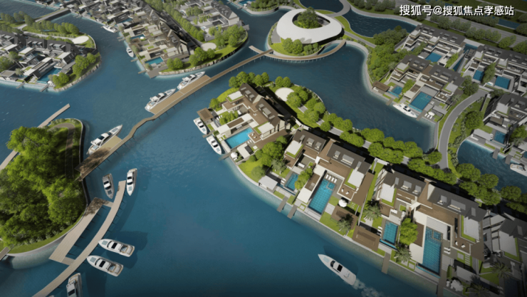 项目从此前曝光的设计方案就可以看出亮点,每一排别墅前都有一条渠道,引入水系,可以停游艇。