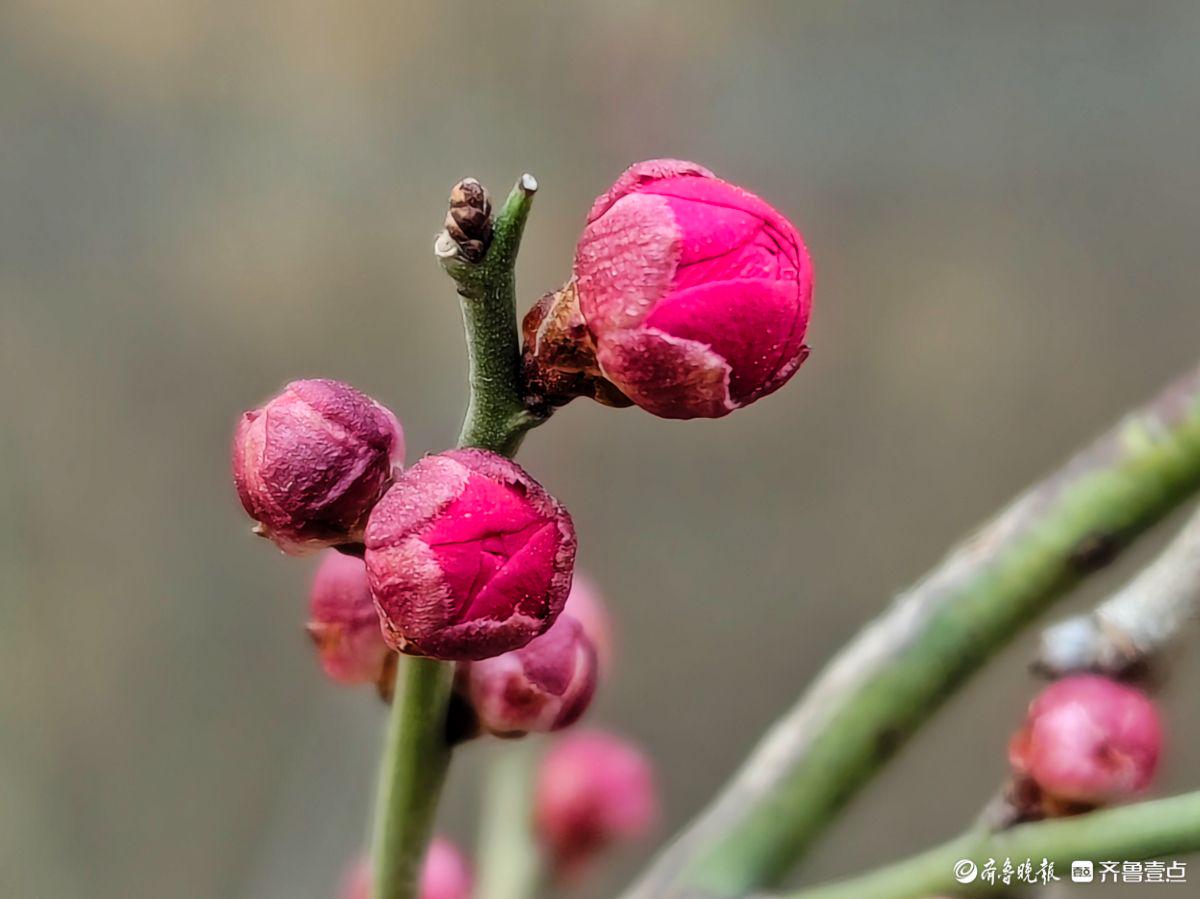 新年伊始,正值小寒,小区绿化带中的红梅含苞待放,它们裹着毛茸茸的花苞,宛如羞涩的少女,正酝酿着一场绚烂的绽放。 高军 摄