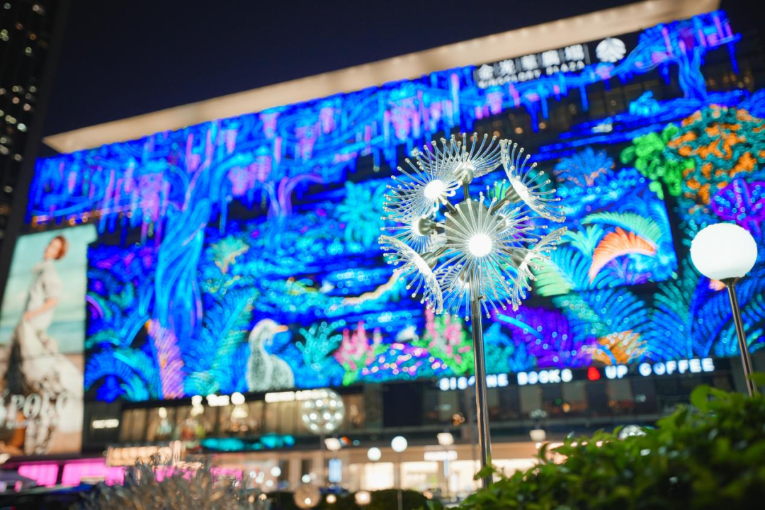 据悉,这片空间灯光,包括幕墙、星帘、景观艺术灯具,均由一套自主研发的“数控编程系统” 统一控制。高性能幕墙LED到节能的景观装饰地插灯和环保材料,在营造极致视觉盛宴的同时,也呼应了出项目对可持续运营的理念。