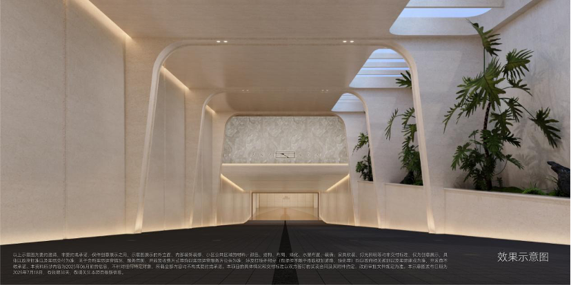 社区入口设计了约87米超长全弧形艺术门庭,归家大堂采用约13.7米的双层挑空设计,灵感源自豪华游艇的甲板,营造出强烈的归家仪式感和尊贵体验。