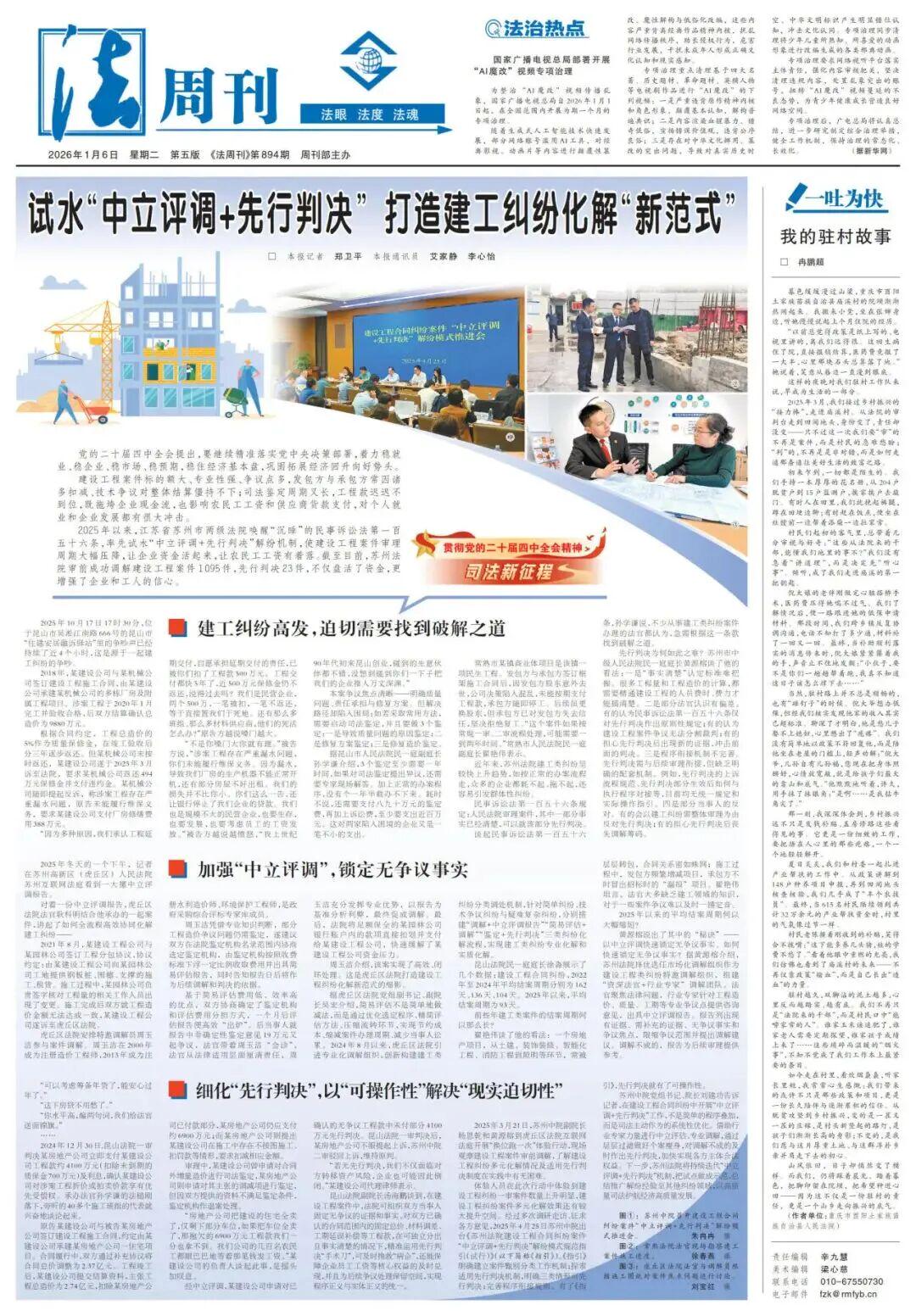 2025年以来,江苏省苏州市两级法院唤醒“沉睡”的民事诉讼法第一百五十六条,率先试水“中立评调﹢先行判决”解纷机制,使建设工程案件审理周期大幅压降,让企业资金活起来,让农民工工资有着落。截至目前,苏州法院审前成功调解建设工程案件1095件,先行判决23件,不仅盘活了资金,更增强了企业和工人的信心。