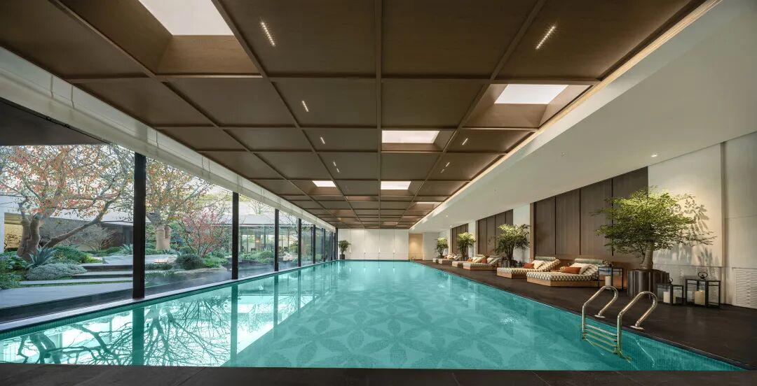 社区内部营造同样体现着“看山不是山”的进阶。团队利用4米天然地势高差,结合“三重水境”(景观跌水、镜面水景、旱溪景观),让云庐自然形成一座罕见的立体园境。绿城还为南京首创约1100㎡的南北双下沉庭院,北院可茶室品茗,“坐看云起时”;南院听流水潺潺,“谈笑无还期”。