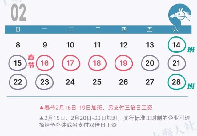 ■休息日为2月15日(小年夜)、2月20日(初四)至23日(初七),这5天用人单位安排劳动者加班,而又不能安排补休的,应按照不低于劳动合同规定的劳动者本人日或小时工资标准的200%支付劳动者工资。