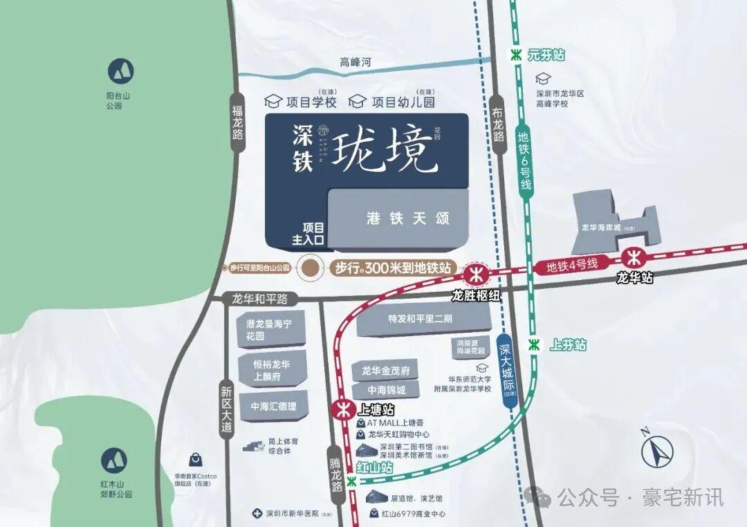深铁珑境,位于深圳龙华区地铁4号线龙胜站,是深铁置业首个“境”系项目,也是区内首个TOD综合体。地处龙华中轴核心,近深圳北站,9站至福田中心。与“中轴提升战略”相契合,助力“数字龙华、都市核心”发展。上塘片区与红山互补,成新兴居住商业中心。毗邻2800万㎡阳台山森林公园,低密宜居。