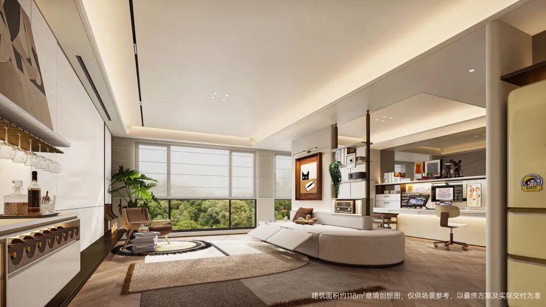 5大全龄架空层,局部为室内空间,包含休闲茶室、儿童娱乐区、亲子互动、健身康体、咖啡吧、休闲书吧等主题功能区,高占比架空层空间,将建筑空间更多服务于业主生活所需,扩容高质量社交圈。
