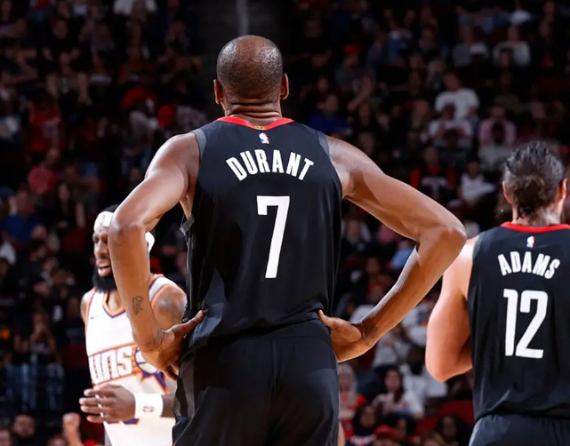 纵观全场比赛,火箭有三个问题,已经到了不得不解决的地步。第一,关键时刻打得是真乱!就以最后6分钟火箭领先7分为例,杜兰特勉强出手三不沾,阿门急停中距离也没有,此后阿门开球失误,伊森底角三分也不中,拿上霍勒迪,对球队节奏并没有太大提升,确实都在乱打!火箭太需要一个控球人了,从阿门到杜兰特,包括谢泼德,都不是这个类型!第二,杜兰特打得明显有些急躁。面对老东家,面对昔日的搭档布克,杜兰特一直非常急于证明自己。