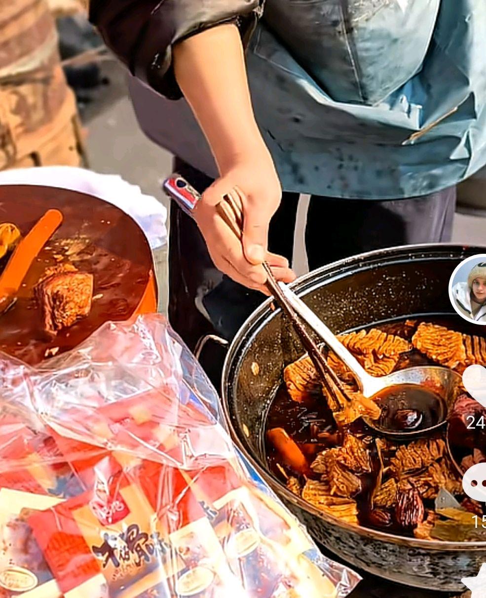 村里的会,规模比较小。有人卖肉夹馍,看起来好诱人。饼里面夹肉沫,豆腐,火腿肠,切成丝塞进饼里。只是砧板看起来也被刮了不少木屑。